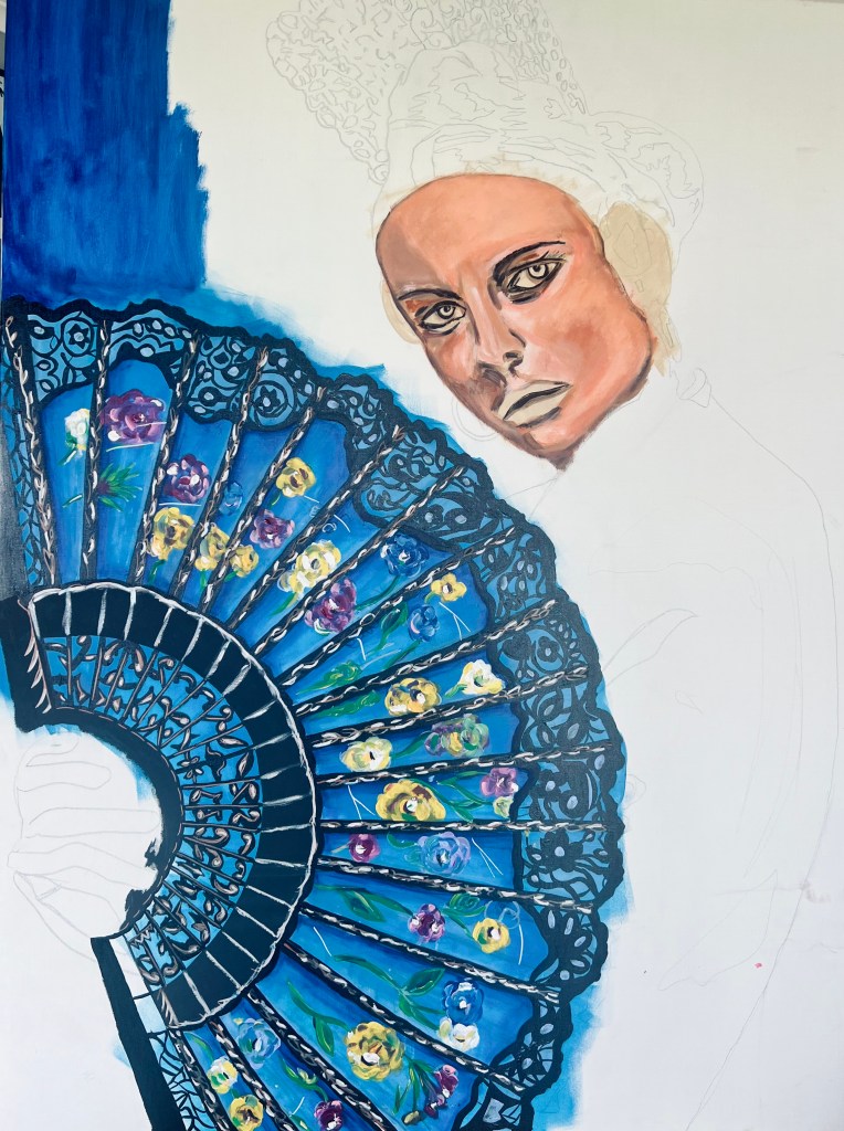 I rarely do portraits or faces for that matter. Complicated process and different level of skill set. Working on this piece at the moment. First layers, many more to go. My aim is to make her look less stern! 🙂